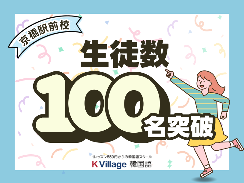K Village 韓国語 京橋駅前校は、2025年7月31日のオープンから約4か月という短い期間で、在籍生徒数100名を突破いたしました。