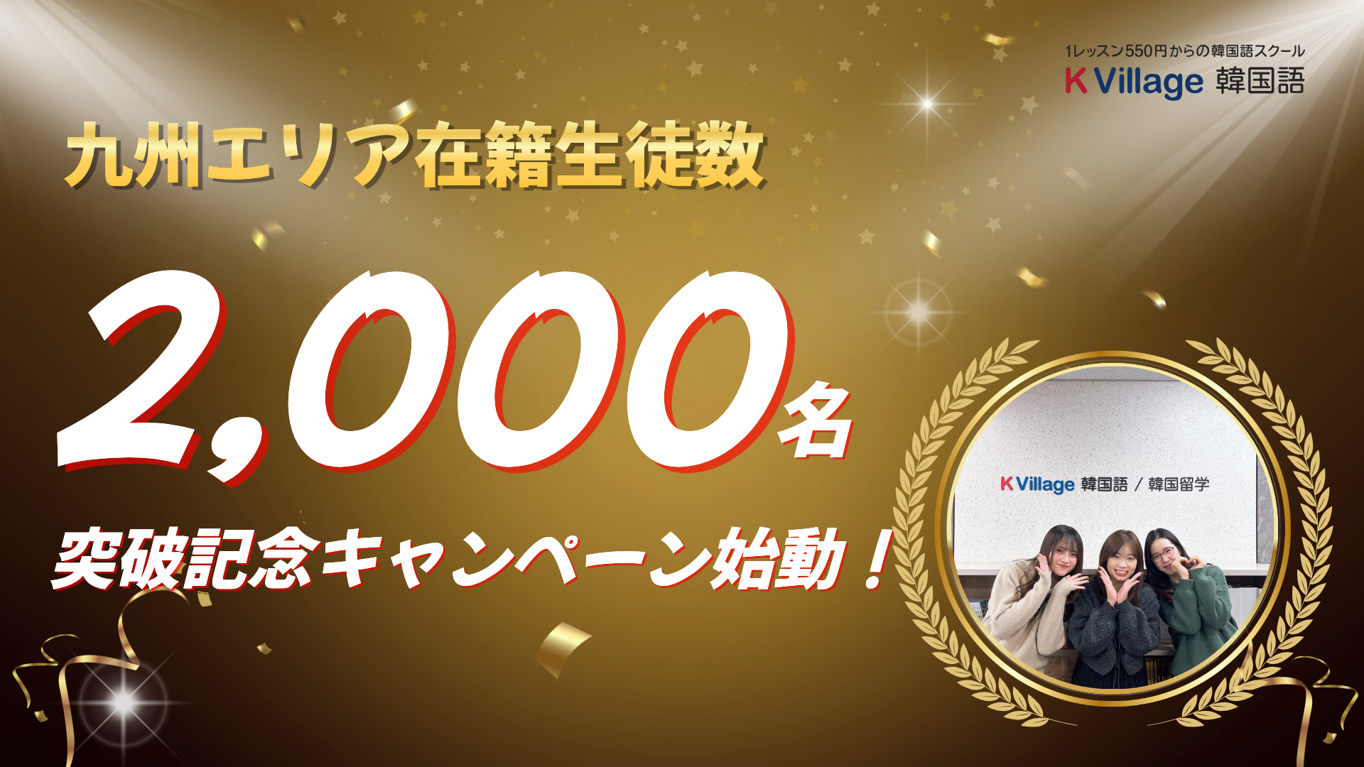 日本最大級の韓国語教室「K Village 韓国語」を運営する株式会社K Village(本社:東京都新宿区、代表取締役社長:桑原 元就)は、九州エリア(福岡天神校・博多駅前校・北九州小倉校)における在籍生徒数が2,000名を突破したことをお知らせします(2026年1月時点)。