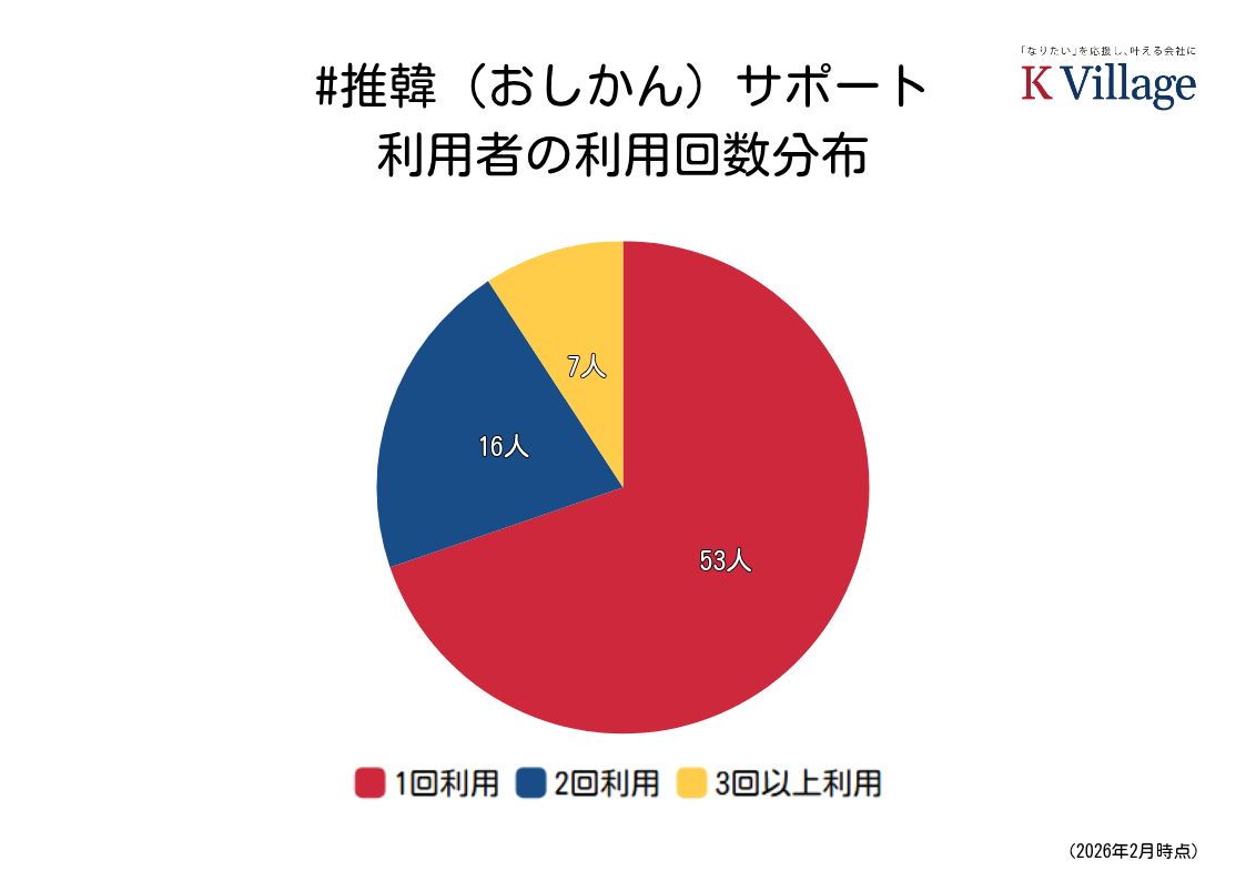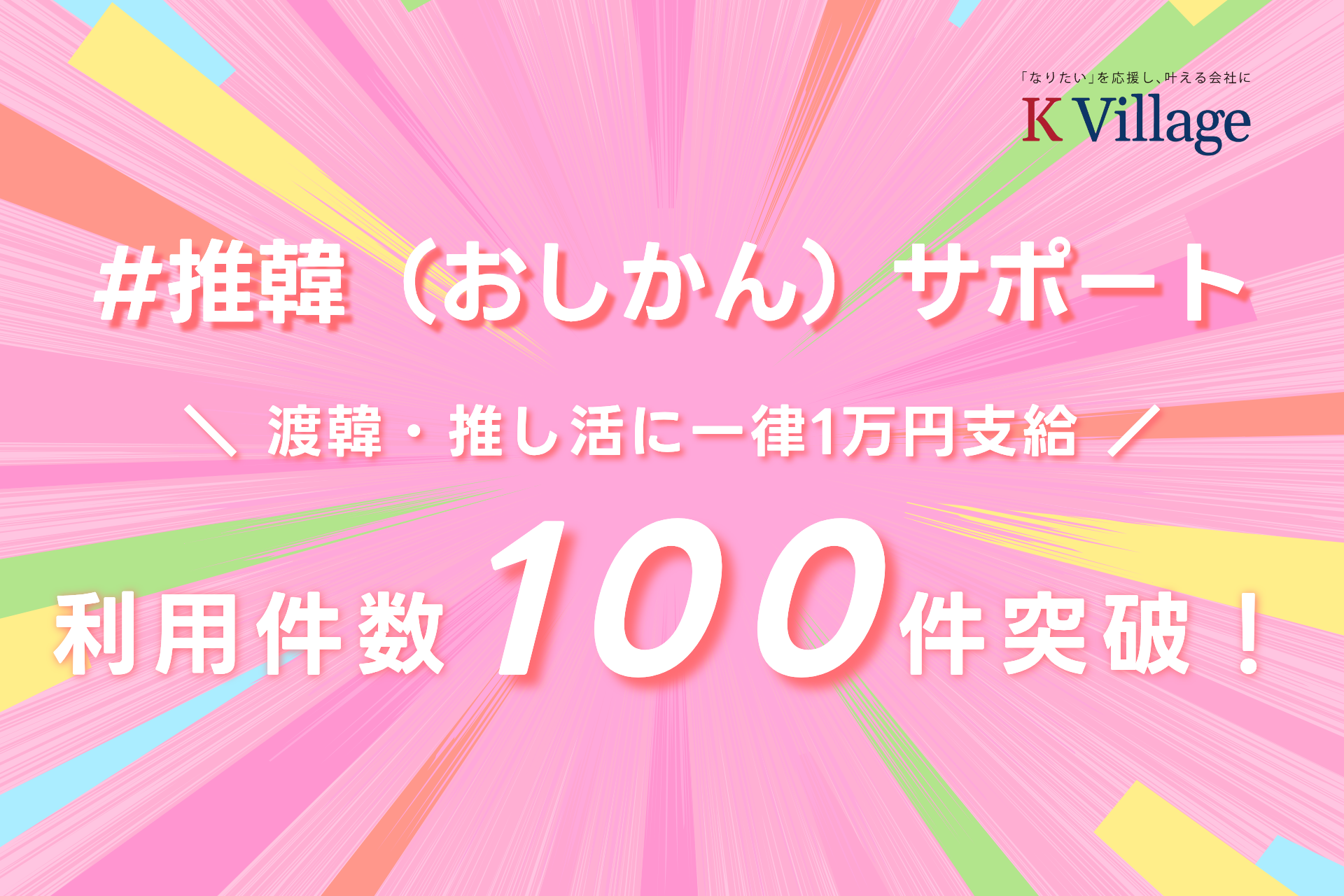日本最大級の韓国語教室「K Village 韓国語」、日本最大級のボイトレ・ダンスマンツーマンスクール「NAYUTAS」を運営する株式会社K Village(本社:東京都新宿区、代表取締役社長:桑原 元就)は、スタッフの「推し活」や「渡韓」を経済的に支援する独自の福利厚生制度「#推韓(おしかん)サポート」の利用件数が、制度開始から100件を突破したことをお知らせします。